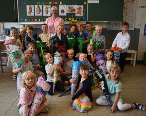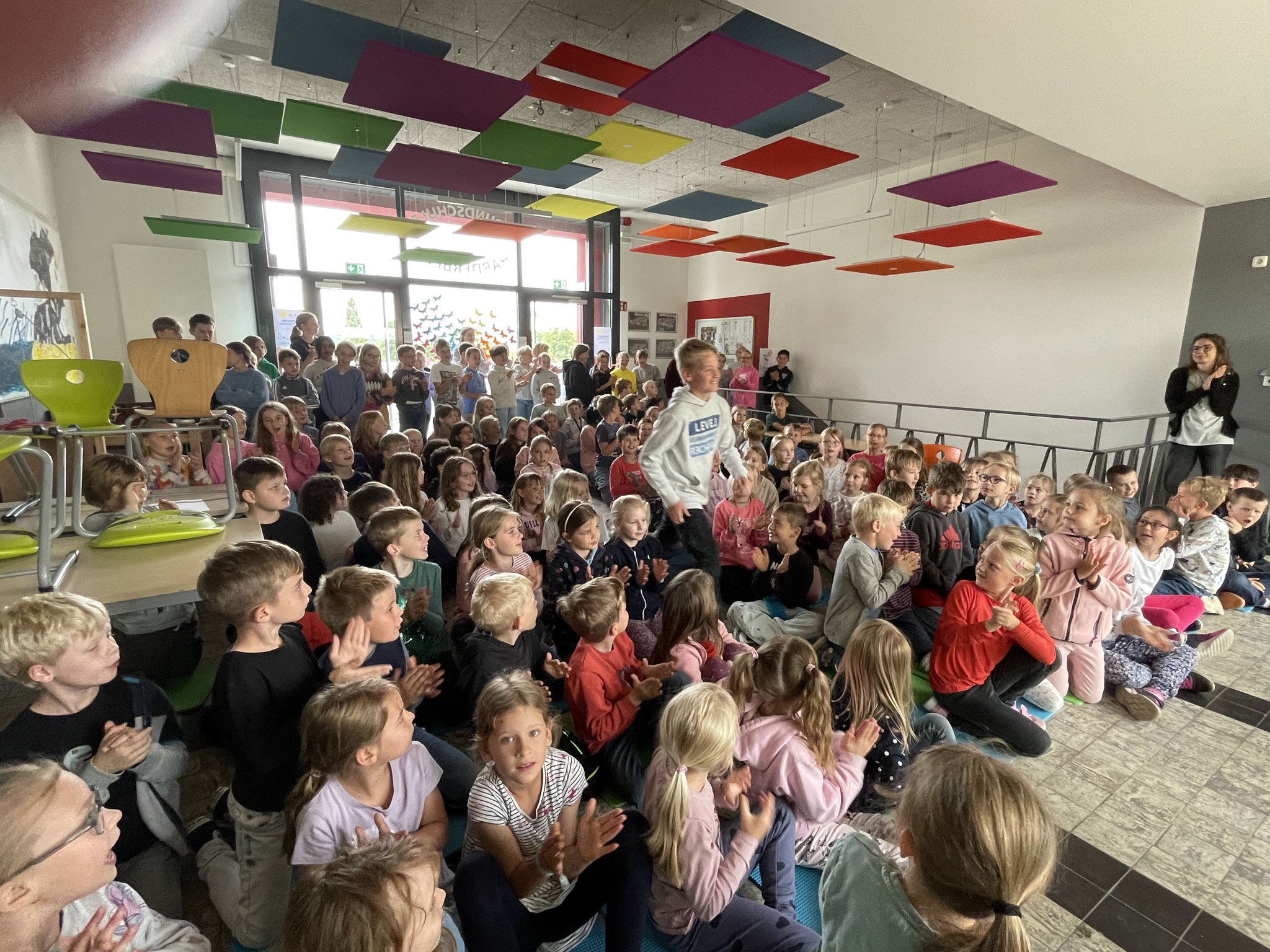 Nach einem ökumenischen Gottesdienst wurden die neuen Erstklässler*innen von ihren Patinnen und Paten des 3. Jahrgangs feierlich begrüßt. Die Kinder der 1a und 1b gingen mit ihren Klassenlehrerinnen anschließend zu ihrer ersten Unterrichtsstunde in der Schule.