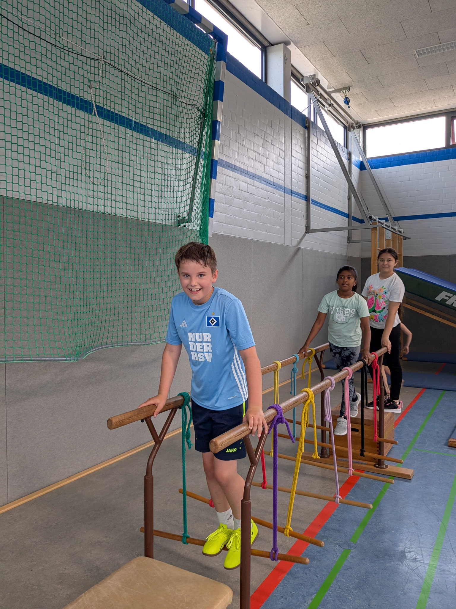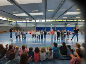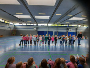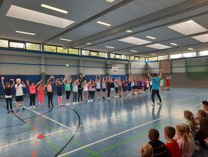 Am letzten Tag vor den Osterferien fand der "1. Tag der Gesundheit" an der Grundschule am Harderberg statt. Nachdem in der ersten Stunde in den Klassen über gesunde Ernährung gesprochen wurde, stand anschließend das Aufwärmen für die Workshops auf dem Stundenplan.
