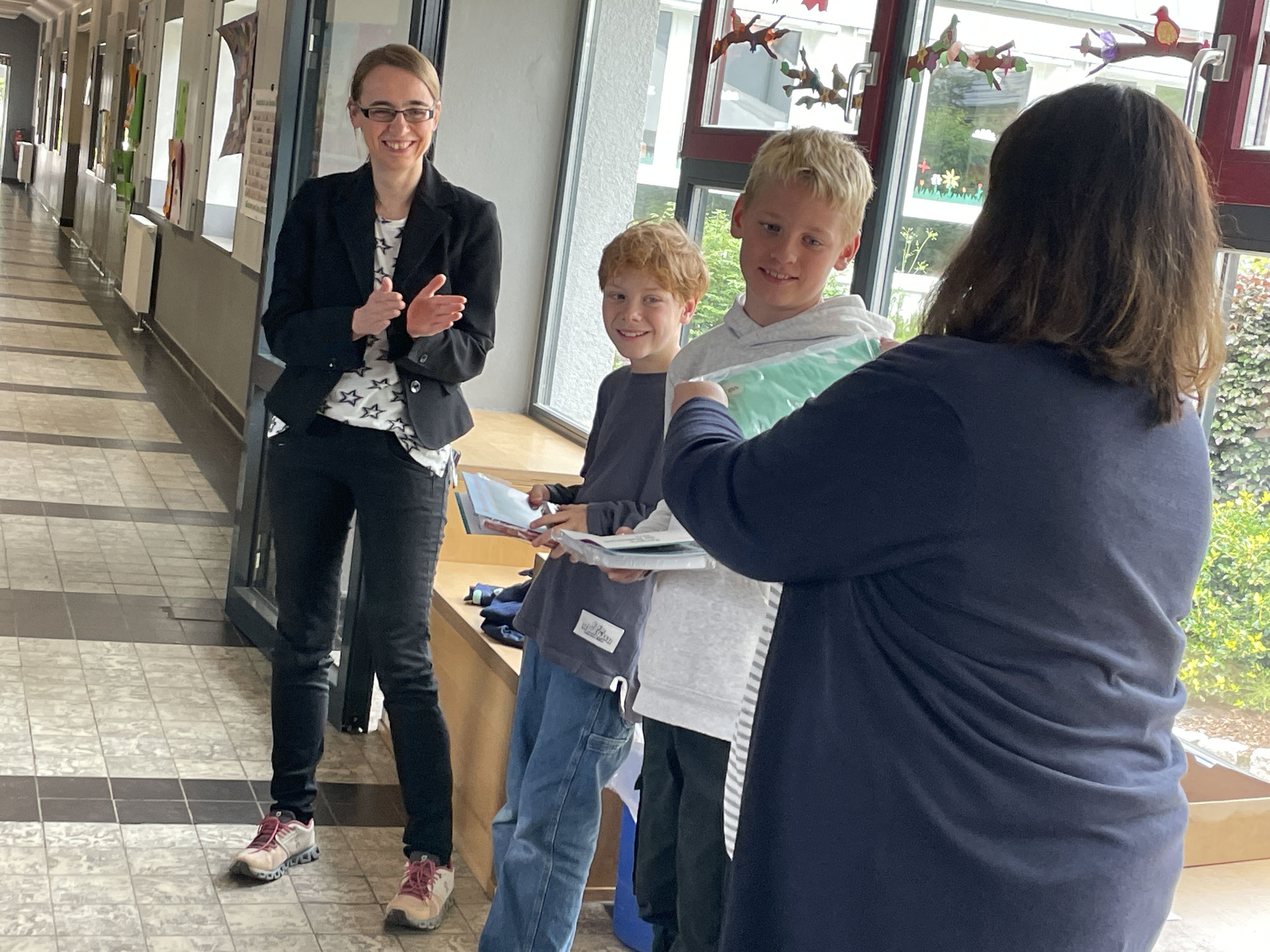 Die Kirchengemeinde als Träger der Bücherei am Harderberg ermöglichte als Sponsor nicht nur dieses Erlebnis den Schülern und Schülerinnen, sondern sorgte auch gleich für neuen passenden Lesestoff, indem sie mit Frau Göschls Kinderbüchern die Bücherei neu bestückte.