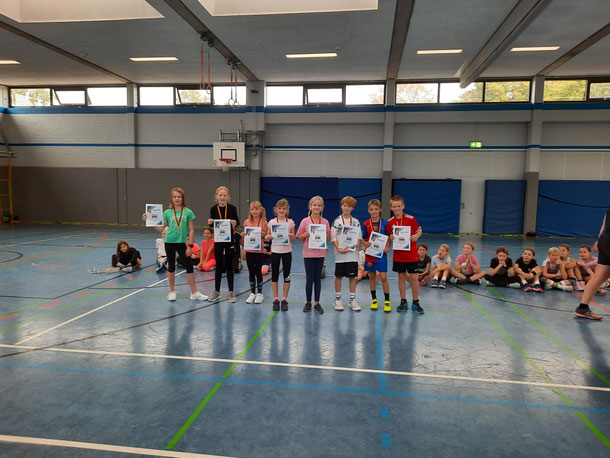 Auch dieses Jahr mussten die Kinder der Grundschule am Harderberg ihr Können in den Disziplinen Ausadauerlauf, Sprinten, Weitsprung und Weitwurf unter Beweis stellen. Alle haben es mit Bravour gemeistert und es wurden einige tolle Leistungen erzielt. Vielen Dank auch an alle fleißigen Helfer, ohne die die Durchführung unseres Sportfestes nicht möglich wäre.